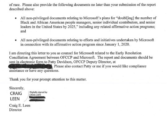 Bull. Here is a link to the letter from Microsoft CEO Satya Nadella to the company’s employees that drew the Labor Department’s attention. Excerpt: