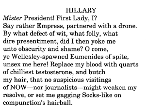 Macdeth was Father Paul’s 1994 spoof of the Bill and Hillary Clinton saga, told as Shakespearean drama. When I read it in The American Spectator, I thought it brilliant satire. Who did this? My friend John Podhoretz said, “A Jesuit priest named Paul Mankowski. He’s insanely smart.” Indeed. Look at this excerpt (for you youngsters, Socks was the Clinton White House cat, and NOW is the National Organization for Women, which used to be a thing):