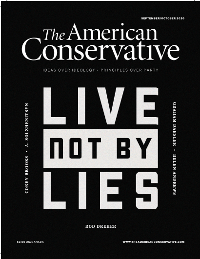 Today The American Conservative goes to press with its September issue, which features a cover package based on the book. If you subscribe, you can read a long piece by me, adapted from Live Not By Lies, as well as a collection of essays reflecting on the rising totalitarianism in American life. Among them, there’s a fantastic piece by Corey Brooks, a black pastor from the South Side of Chicago, arguing that black Americans deserve better than the Black Lives Matter movement and the 1619 Project. TAC’s Helen Andrews has a powerful essay drawing parallels between Russian society and politics in the late imperial period, and what we Americans are facing today.