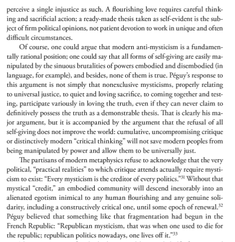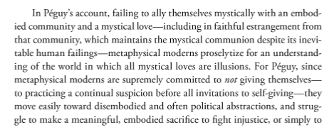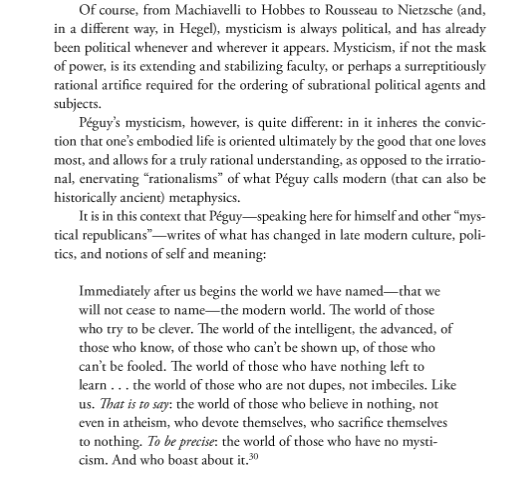 Read it all. I’m tempted to get Maguire’s book, given my interest in Péguy (who re-started the annual walking pilgrimage from Paris to Chartres), and because I’m curious about his critique of the “immanentism” of the Left and the Right of his day.