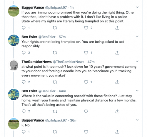 6. Most of all, I still stand by my observation that liberal democracies are headed for a more-or-less totalitarian future. It is only an inkling of mine, maybe not a very original one. It may come about from ideological zeal (SJWs), or some other combination of factors, but I do think that this pandemic, whether we like it or not, will contribute to this. I am thinking about mass surveillance upgraded, and so on and so forth. That is why it feels a bit absurd, even if in some ways justified, that some people are having a hissy fit over Orbán in these circumstances.