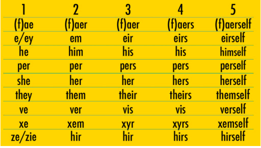 Third, the inmates-cannot-be-allowed-to-run-the-asylum argument. Duncan’s ruling cites this chart from the “Pronoun How-To Guide” from the LGBTQ+ Resource Center at the University of Wisconsin-Milwaukee: