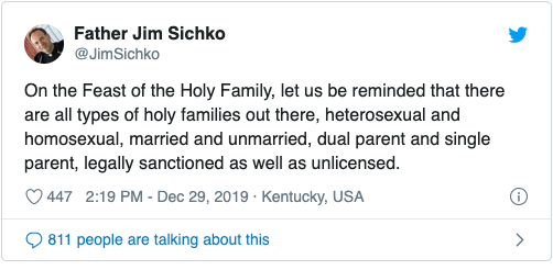 UPDATE: Father Jim Sichko, commissioned by Pope Francis as a full-time “papal missionary for mercy,” has blocked me from reading his tweets, but a reader posted this one from him in the comments section: