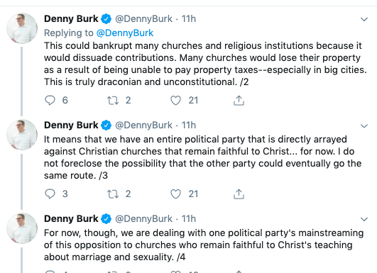 Readers, something is coming. As Denny Burk said, one of the two political parties in the US is arraying itself against churches that remain faithful to the Bible’s sexual teaching. And, we should not expect that the other party will always defend us.