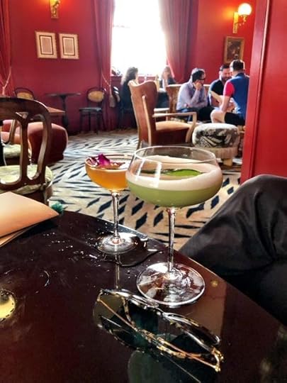 Later in the day, I went to New Orleans with my son Matt. We met my friend Dorian Greene at Bar Marilou, where friend and I had cocktails. It’s a picturesque bar, and here’s a good VFYT, except for the fact that I bumped the table moving into position to take it, and spilled my drink (the one on the left, which involved gin, amaro, and habanero bitters):