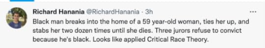 Exactly. And this is why the further along we get in mainstreaming CRT, the closer we will come to civil war. You cannot expect people to sit back and accept that the murderer of their loved one should get a lesser sentence because of the color of his skin. Black people in this country had to live with that for many years. It was monstrously unjust. It always will be unjust to dole out justice on the basis of race, wealth, or anything else other than individual guilt or innocence. Our legal system cannot survive jurors who are willing to send people to prison, and keep them out of prison, on the basis of the defendant’s race. While we will never be able to achieve a system capable of producing perfect justice, we can get closer to that ideal. The Florida jury’s verdict is a huge step backward. It would be possible to look at this as an aberration, except for the fact that as Hanania points out, that immoral verdict is what you would expect under Critical Race Theory.