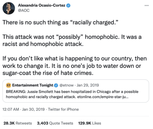 Let’s revisit some of what was said back in 2019 about the Smollett claim that he was brutalized by gay-bashers screaming, “This is MAGA country!”: