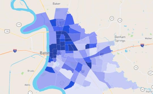 The thing is, any home buyer with a lick of sense is going to check out the crime stats in neighborhoods where he is looking to purchase. You’d be a fool not to. Here is the 2020 homicide map for Baton Rouge. If you know the city, you can tell that the majority of these killings happened in predominantly black parts of town: