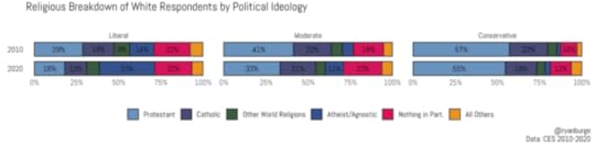In 2020, a white liberal is TEN TIMES more likely to be an atheist or agnostic than a white conservative.