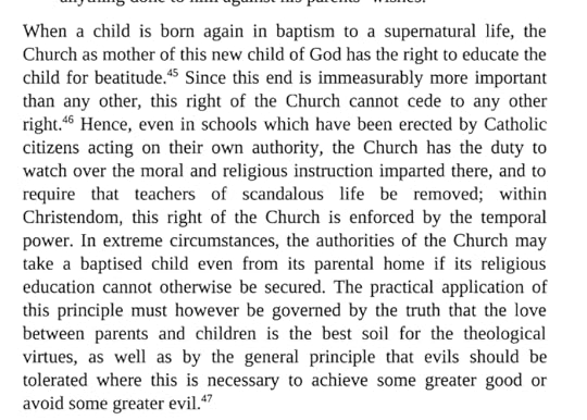 It is true that we have to base a postliberal political order on the idea of the Good — but I do not want Catholic integralists in charge of defining the Good, and imposing it on the rest of us. It’s very hard to pin them down on what they actually think, possibly because the System is pristine, until you try to instantiate it. For example, I think the reason they get so upset when people bring up things like the Edgardo Mortara case from the 19th century is because it uses a real-life example of Catholic integralism acting on its idea of the good — namely, that a baptized Catholic child has the right to a Catholic upbringing — and using it to justify a monstrous deed (taking a Jewish child who had been secretly baptized by the Catholic maid away from his parents). Nobody thinks we are going to live in the Papal States again, but the fact that you can’t get today’s integralists to condemn what Pius IX did is because Pius’s seizing the Mortara boy was not an aberration of integralist principles, but a fulfillment of them.