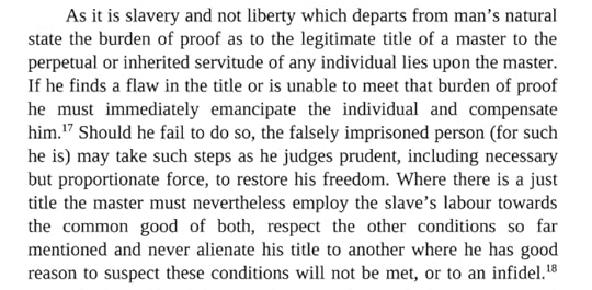 According to integralism, slavery is not ruled out. The slave simply must have his servitude comport with the law: