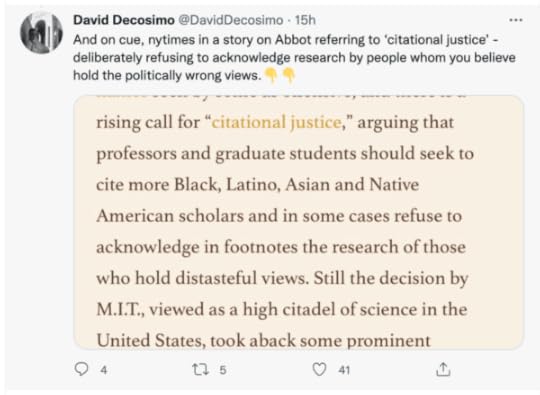 Here’s a link to the story about “citational justice.” It also includes the quote I cited earlier, from the Williams College paleontologist, saying that rigorous intellectual debate is a white thing.