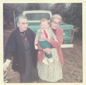 And here are Aunt Hilda and Aunt Lois, holding me in the yard outside their cabin, circa 1968: