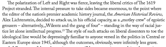 And then Wilentz set out to use his prestige, and his credentials as a leading intellectual of the Left, to correct the record. He writes about running into a stone wall, both at the Times, which refused to admit error, and among professional historians, who were too afraid to be seen as racist to go public with their criticism. More: