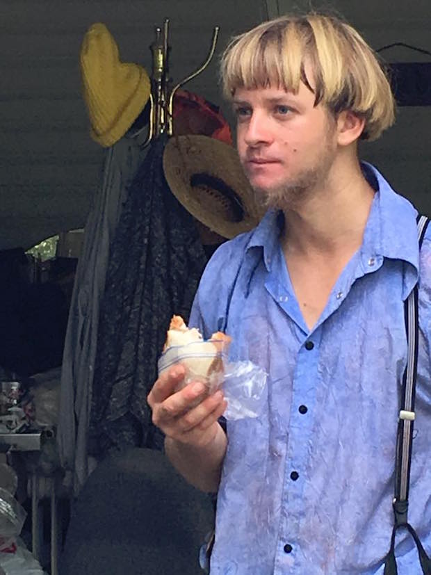 How about that! Seven young Amish men drove from Pennsylvania to south Louisiana to help gut flood victims’ houses. That’s one of the Amish men having some lunch on the jobsite. More details — and photos — on the Facebook page of St. John the Baptist Catholic Church in Zachary, La., where the Amish men served. The local folks call them the “Krewe of Samuel”. A “krewe” is a Mardi Gras club, and “Samuel,” because five of the seven men are named Samuel.