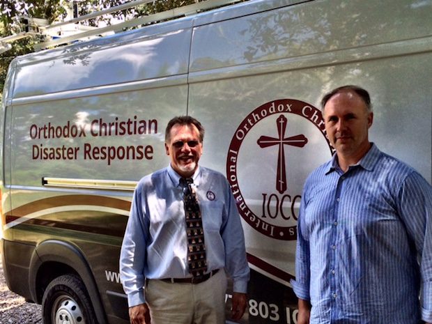 So many people from all around the USA are being so good to us in Louisiana in the wake of these devastating floods. Here’s a photo of Dan Christopulos and Alex Petrovsky, who were with an Orthodox crew gutting houses and helping folks these past few days. On Saturday, the IOCC team was working on a house in inner-city Baton Rouge, near to where Alton Sterling was shot, with a team from Nechama, a Jewish disaster relief organization. May God richly bless these good Samaritans from all over America who are coming to help us!