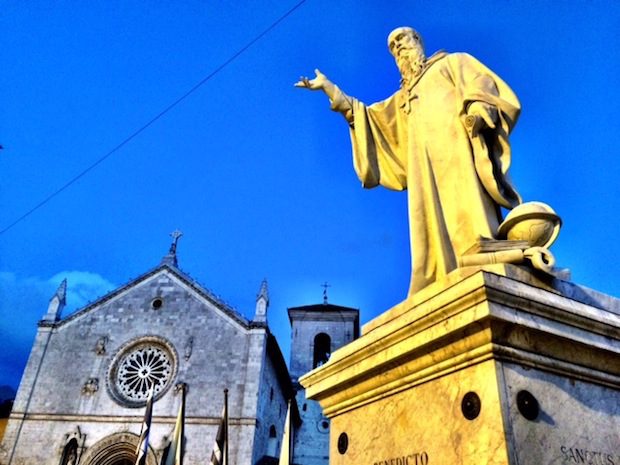 Here’s a shot I took last time I was there of the statue of St. Benedict in the piazza there, with the basilica behind him. I will update this post once I’ve heard from our friends there. I have also put out a line to Marco Sermarini to see how the people of San Benedetto del Tronto have made it through the night.