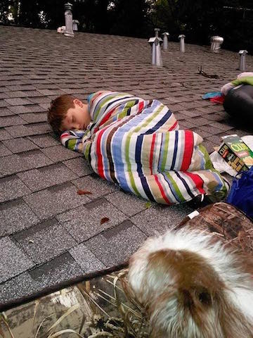 Eventually we found Jacob and Josh [Note: I’ve changed their names to protect their privacy — RD]. They were very eager to come. They had not slept the night before because of all the crying babies around them. They had been rescued by boat. They live in a second floor apartment, so most of their personal belongings are probably okay. They’re still asleep right now. We’re going to go over and check in a little while. I think the water has gone down now.