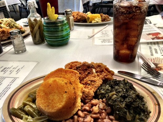 It’s funny, but what most people outside the South call “soul food” is just Southern country people food. Country white people eat the same thing, or at least they used to. I grew up with this stuff: fried chicken, mustard greens, field peas, cornbread, and so on.