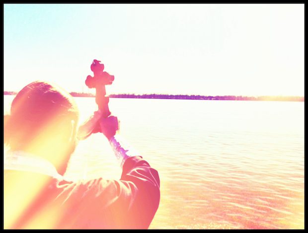 Father Matthew, blessing the Mississippi River on Theophany (Photo by Rod Dreher)