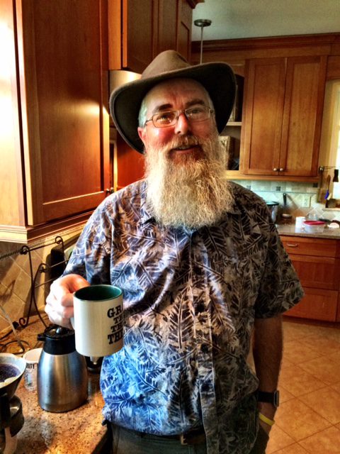 Finally, before I go off to pray, here’s a photo of Mike Lawless, who, with his family, was the original settler of the Catholic agrarian community here (they moved here from San Diego). This morning, he made me a cup of “bulletproof coffee,” which I was very reluctant to try (the thought made me queasy, given that the thing is full of butter), but which, I have to admit, was pretty dang good. Mike was one of the local folks who made me feel so welcome here, and to him and to all the others in the village around Clear Creek Abbey, I am so grateful.