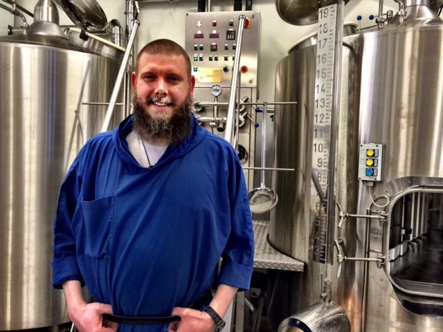 The other day I interviewed Brother Francis, from Dallas, in the monastery brewery. Brother Francis is the brewmeister. I tried to get this image out of my phone, without luck, until today. We talked about our mutual friend, Father Paul Weinberger. And I drank a goodly portion of his dark beer, which is astonishingly delicious. There’s nothing quite like drinking beer at table with the monks who brewed it. Here’s the King of Birra Nursia:
