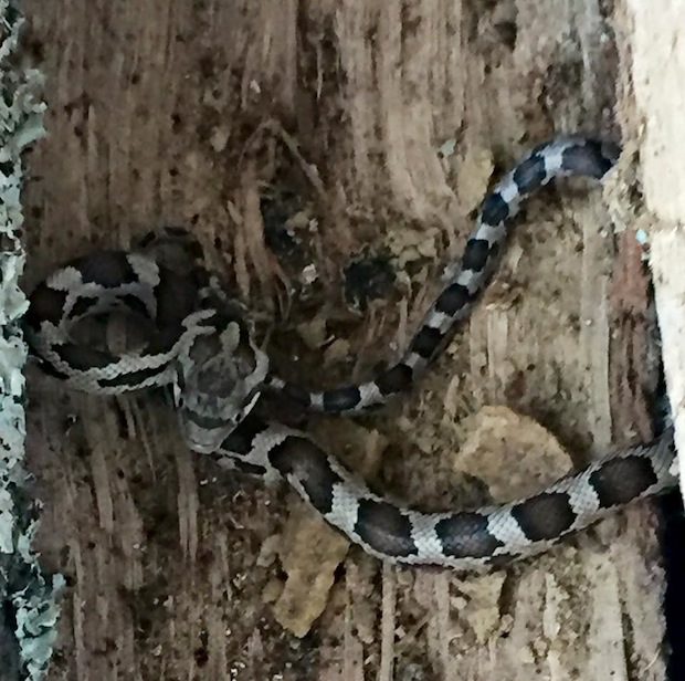 And then a friend of ours found this sucker in his woodpile this morning. Not quite sure if that’s a young cottonmouth or a young rattler, but it’s definitely venomous.