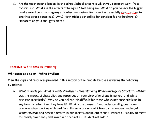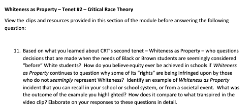 I’ve been reading your blog for a couple years now. I sometimes disagree with your takes, but I steadfastly agree about the damage Critical Race Theory (CRT) is doing to our nation. I’m a high school teacher in [state] and currently taking the last class required for my master’s degree in education through [university]. The class covers some of the science behind how people (and specifically children) learn.The latest modules, however, deal with CRT and its tenets, such as the permanence of racism, the failure of liberalism, the myth of colorblindness, and others. It has been difficult to complete the assignments because I disagree with nearly all of them. I find myself staring at the screen in gridlock because the work presupposes all of these beliefs. How can I answer from a perspective I feel is inherently wrong? As an example, some of my assignments are attached below.To make the situation more interesting, the class is taught by a white female professor and the students are nearly all white women. One student may be Indian, but it’s hard to tell since we’ve only met virtually. As a person of color, I have more experience living as a minority in this society than all of them, yet I’m supposed to pretend I believe these insane ideas.My [spouse] knows and understands my frustration. I just have to “suck it up” and finish this class so I can get my degree. I will never accept CRT because its tenets are antithetical to the Gospel. However, I wanted to write to you so you and others can see what happens in teacher education right now in our country. If conservatives ever want to right this ship, they need to start getting involved in public education, and, preferably, become teachers themselves.I’m going to share the documents below. But first, I wrote back to this reader to ask why conservatives and traditional Christians should get involved in a profession in which everything is stacked against them? The reader responded: