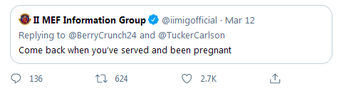 Still, this is one of those moments when the veil slipped to reveal what’s really there. Whoever was in charge of the USMC Twitter account got out ahead of his bosses, but not that far ahead. The DoD put out a press release last week trashing Carlson in extraordinary terms.