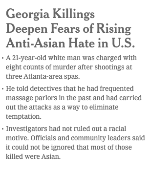 UPDATE.2: I think people must have this idea that Long chose to attack Asian massage parlors because he hates Asians. In fact, based on what we know at this point, he went to those massage parlors to kill because those were the ones he had gone to for sex.