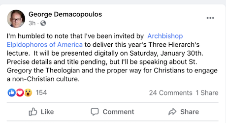 Prof. Demacopoulos is a Fordham professor, a leader in the Mainline-Protestant wing of American Orthodoxy, and one of the people trying to get me disinvited by the seminary on grounds that I am neither academic nor cleric, and that I am somehow demeaning the lecture by being political (my lecture will not be political). No time has yet been announced for Demacopoulos’s just-announced lecture, but — surprise! — I imagine it will coincide with mine. Seems to me like a cheap stunt by people who are outraged that they can’t control the Orthodox narrative, but given that I didn’t expect that the Orthodox Left would fork over the money to listen to my talk, I suppose it’s good that they will have something to do with their time on that day. Interested observers of American religious culture will see rival visions of Christian engagement on display that day, from two Orthodox commenters. I’m biased, of course, but if you listen to my lecture, you will hear something about a vital future for Orthodoxy in America; the other guy will be talking about a way for the Orthodox Church to manage a decline into senescent respectability.