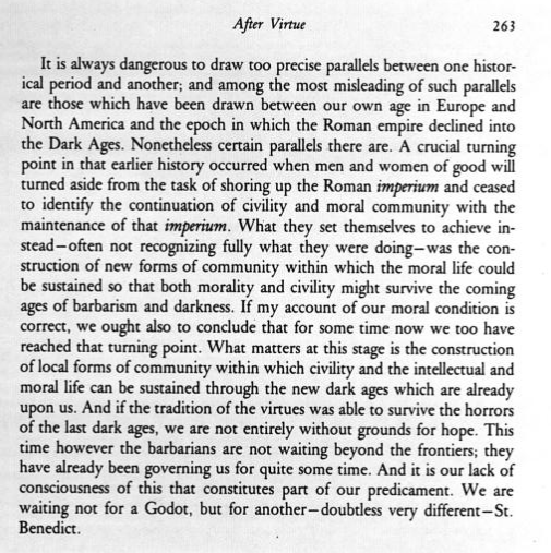 I’ve been following you on twitter and also reading TAC over the last year or so. Finally, over the Christmas break, I decided to read The Benedict Option, as it’s interested me for a while. I don’t know if you check your mail (or even care if fans email you) but I wanted to give you some insight from a 26 year old in a very liberal/progressive part of North America.