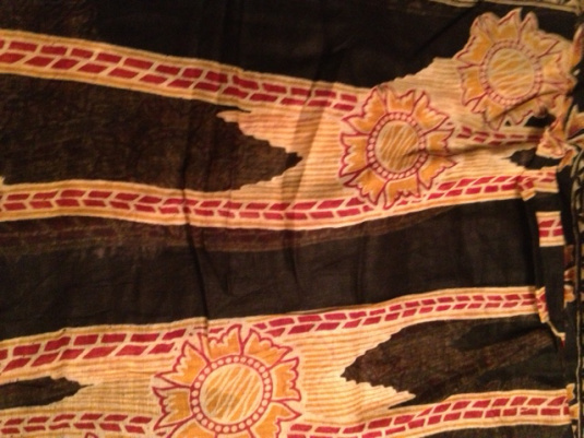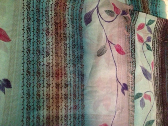 This is a beautiful sheer border print that a friend gave me. I’m not good with sheers or border prints, so….scared to try anything!