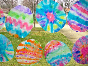 We made these, too, by using markers on a coffee filter, then spritzing with water.