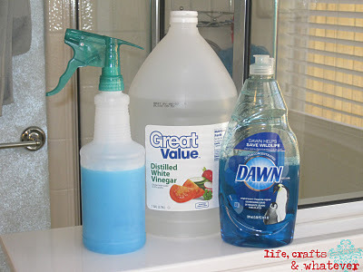 You mix a one-to-one ratio of vinegar (heated) and blue Dawn. Put it in a spray bottle and spray it in the shower, on soap scum. Not only does it work like damn, but it LASTS. The only downside is that it can make the floor slippery, so beware.
