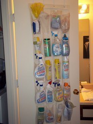I cleaned out under my sink and organized my cleansers with a shoe organizer. It's in the garage, so out of the way and easy to keep track of what you have (I had three cans of Comet!)