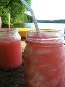Then there's the frozen strawberry mojito. Mmmmmm. A can of limeade, 1/2 a can of vodka, fresh strawberries, muddled mint.