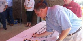 Senator Mark Pryor (D-AR) signs “safe gun” pledge at NSSF event.