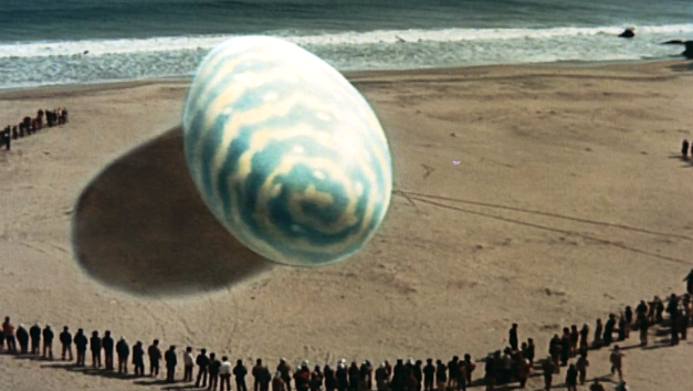 If the angle about a pharmaceutical company and its CEO was played largely for laughs in King Kong vs. Godzilla, a similar plot-line gets more serious treatment in Godzilla vs. The Thing . Here, a company takes possession of an egg it clearly didn’t hatch, and offers to let scientists study it…for a price.