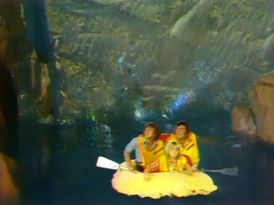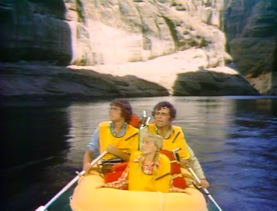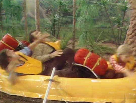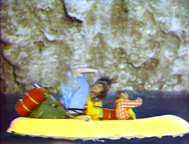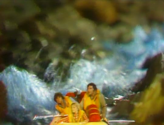 The next frame finds the Marshalls -- Rick, Will and Holly -- in an inflatable raft, navigating a winding river.
