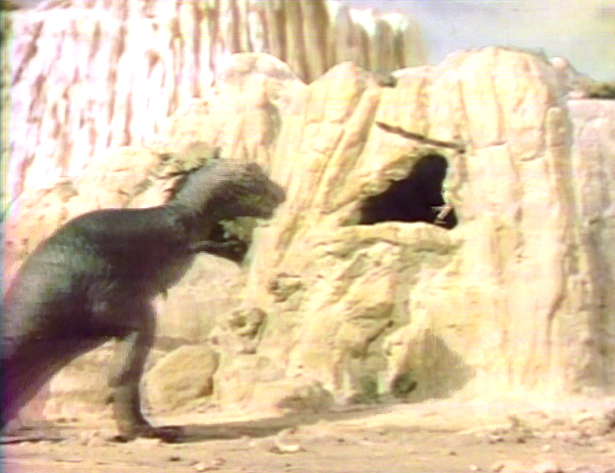 Land of the Lost's stone caves were made out of "the same stuff you use to build a swimming pool," Zimmerman reveals. "We put steel mesh over wooden frames, and over that was solid plaster. They did Land of the Lost for three seasons, and at the end of that time, the plaster had hardened. When we went to strike the sets at the end of the show's run, we had to get a wrecking ball to destroy the caves, and take out the sets in a few very heavy pieces."