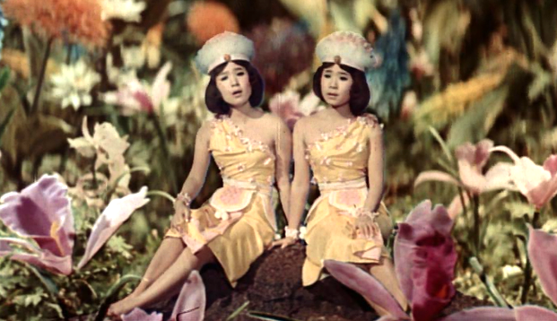 “Money, that’s all they’re interested in….” Following a dangerous typhoon, a reporter, Ichiro (Akira Takarada), and his new photographer, Junko (Yuriko Hoshi) survey the damage to the shore-line. They uncover a giant reptile scale, but that discovery pales in comparison to another.A giant, colorful egg has been seen in the shallow waters of the coast. This colossal egg is brought ashore by the poor locals, and studied by scientists, including Professor Miura (Hiroshi Koizumi) until a businessman named Mr. Kumayama (Yoshifumi Tojima) brazenly explains that the egg is his property. He has just purchased it from the desperate locals, who have endured the typhoon damage. He plans to sell it to the head of Happy Enterprises, with the express purpose of creating an amusement park attraction based on it. Soon work is under-way to incubate the egg in a large structure…Before long, the Shobijin -- two tiny fairy women -- appear in Japan, and ask the businessmen for the return of the egg to its home on Infant Island.,The egg belongs to their deity, a giant old creature called Mothra. Their pleas are ridiculed and ignored, however and the small women face capture themselves. They escape from custody and return to Infant Island.Meaenwhile, Godzilla rears his head in Japan again, this time near the beach where he washed ashore (and lost his scale…) in the hurricane. Godzilla promptly begins to cause great damage to Japanese industry and property, prompting Ichiro and Junko to visit Infant Island and beg Mothra’s help to defeat him.On the island, Mothra’s help is solicited, even though the island has been ravaged by atomic testing, and civilized man refused to return the giant monster’s egg. Still, Mothra agrees to help…but the monster is aged, and may not be able to defeat Godzilla.When Mothra dies in a fierce battle with the giant radioactive lizard, her egg finally hatches, and two Mothra grubs continue the fight, for all mankind.