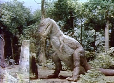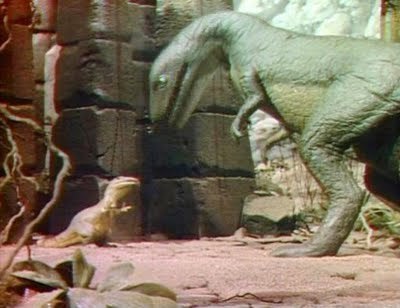 I still remember tuning in to the first episode of the series and immediately falling in love with both the overall concept -- of a family "falling" into another world -- and the execution, which involved (at the time...) impressive stop-motion dinosaurs like Grumpy (a T-Rex), Big Alice (an allosaur), and Dopey (a brontosaur).