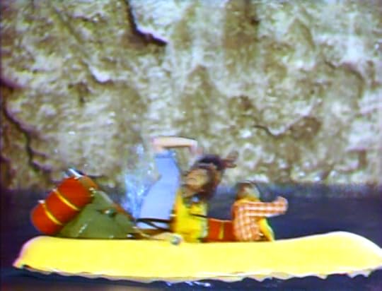 As the small raft careens down the colossal falls, the entire screen turns to white mist. Out of the mist comes a credit: Sid and Marty Krofft Present...