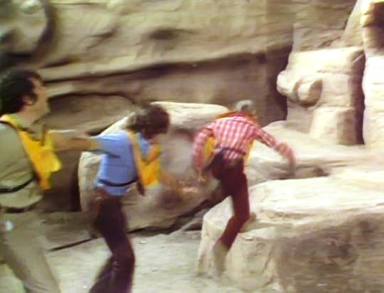 The series could begin so quickly with the action, in part, because of the splendid Land of the Lost introductory montage, which -- when paired with Linda Laurie's unforgettable theme song -- depicted the opening chapter of the Marshall saga.