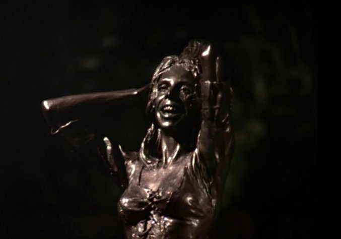 she hears ghostly singing inside the house at night, the visuals suggest the statue is,