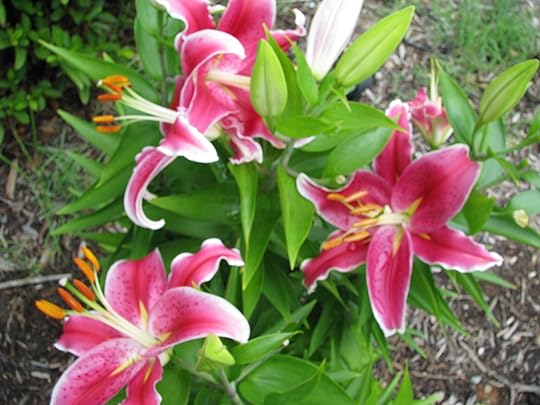 In between downpour segments, I snapped these pictures of my blooming stargazer lilies.They were an acquisition last summer. I hope they can brighten your day.
