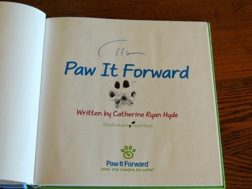 Up for grabs is a hardcover copy of Ella's and my Paw It Forward book, with my autograph and Ella's "Pawtograph." Great for your kids, grandkids, or, well... if you're a dog lover and you just want it for yourself I'll understand.