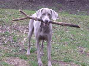 Me: To beat a subject to death, you used to do a meme called Weimaraner Wednesday, with photos and videos of Wiki. That’s actually where I stole the idea (which I think you borrowed from a cat-loving blogger?) for my More Puppy and More Kitty blog meme. But you haven’t done one since October. Meanwhile, I love the video from that last one: Wiki throwing her Kong down to try to shake loose what’s in it. So I’m embedding the video below. Is Weimaraner Wednesday all over, or might you bring it back?