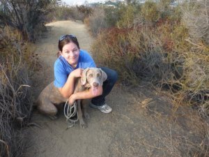 Melanie: Oh my goodness. You should never give a dog person permission to go on and on about their dog. I grew up in a zoo. I mean, not literally, but my house was always packed with animals. My parents had an aviary in the backyard, bred dogs, and kept a rotating cast of cats, snakes, geckos, chameleons, fish, frogs, hamsters, etc. I developed a love for all creatures great and small pretty early on, but because I was the youngest in my family, I was only allowed to get a cat, rather than a dog, growing up because others had already picked out dogs. When I was about 12, I went with my parents and their two English Springer Spaniels to help with dog obedience classes, and I fell in love with a Weimaraner that was in the class. I decided then that when I could pick out my own dog, I was getting a Weimaraner.